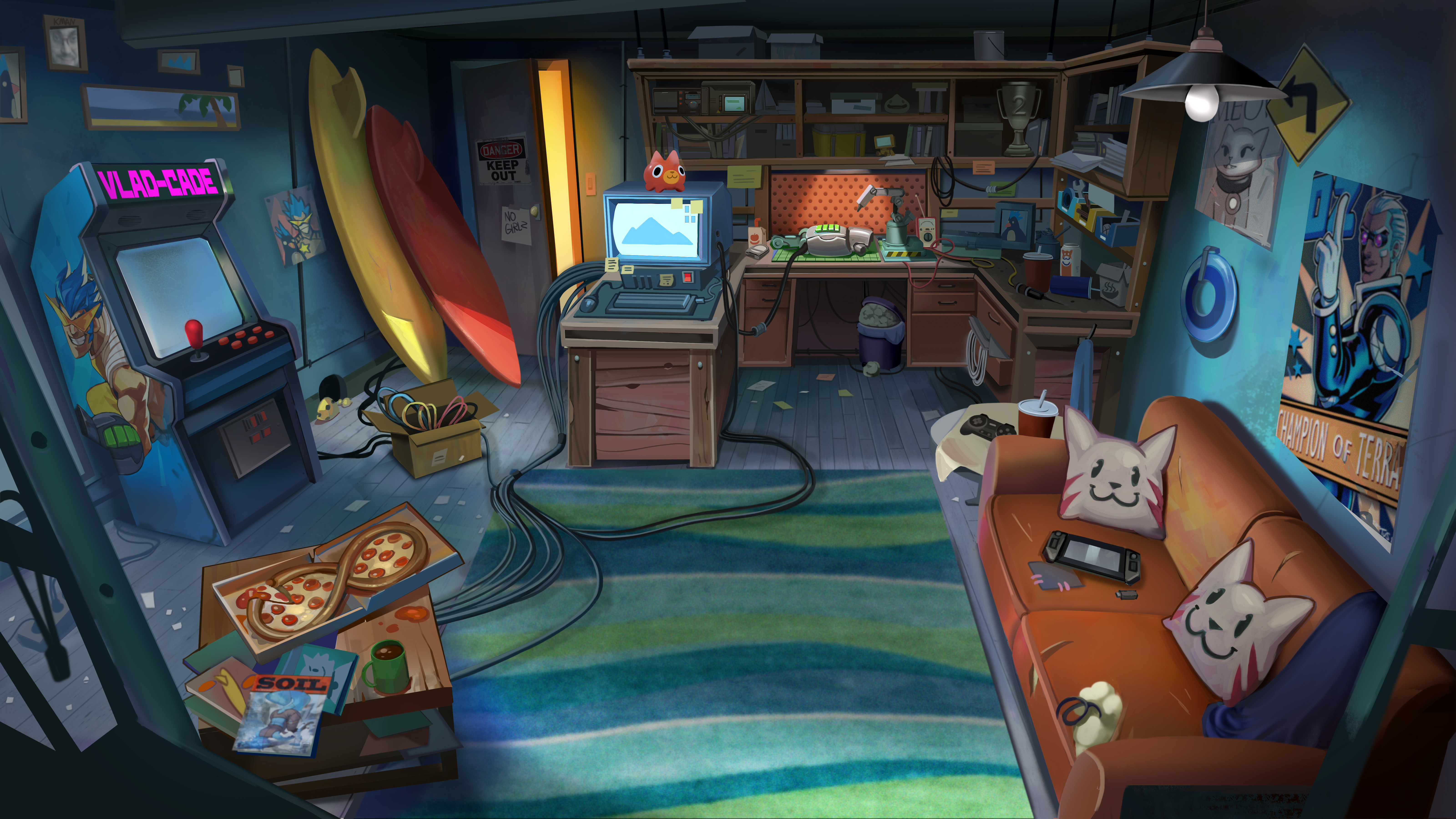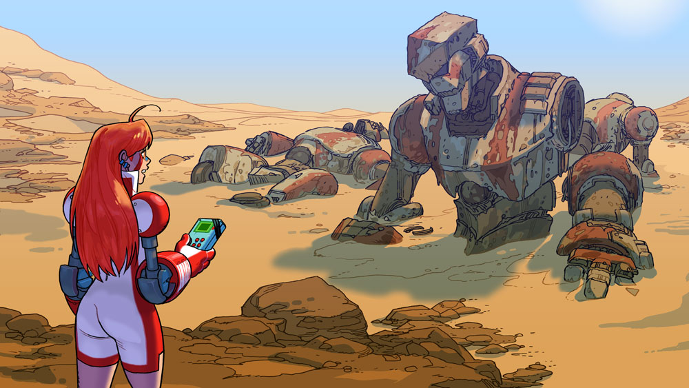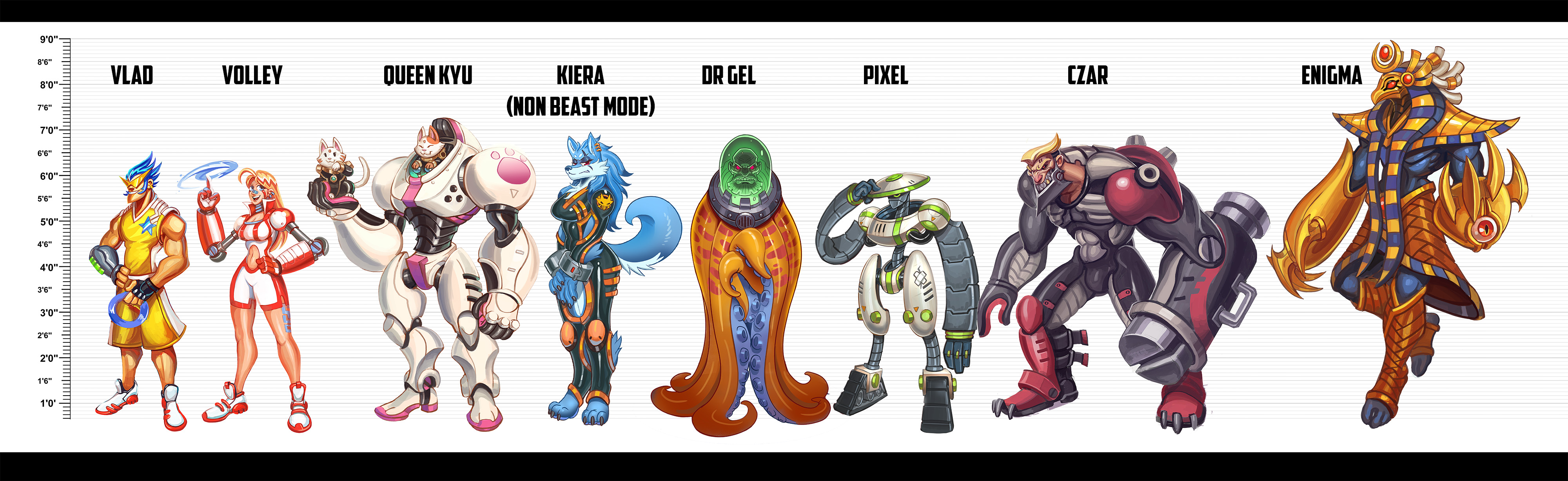 colorful designs. Including coloful, over the top characters like Queen Kyu- A feline queen who wants to stand tall like her humanoid peers via the use of a mech her empire developed.