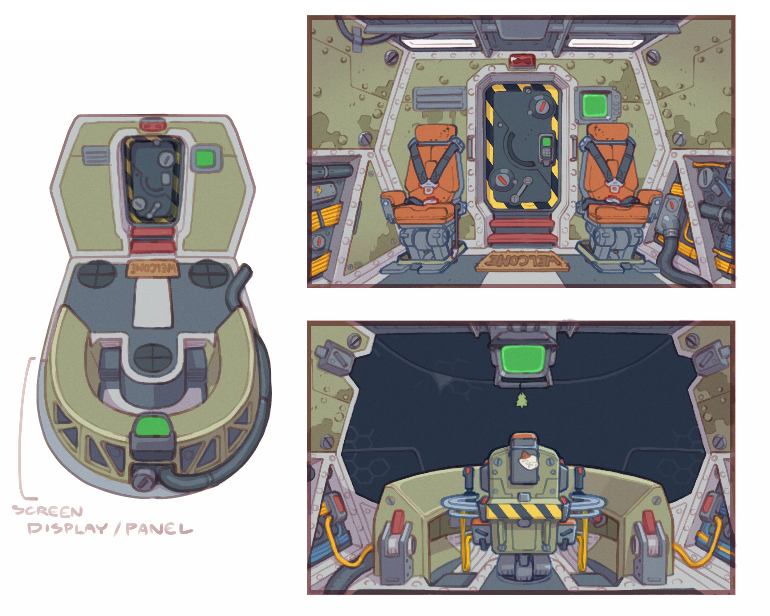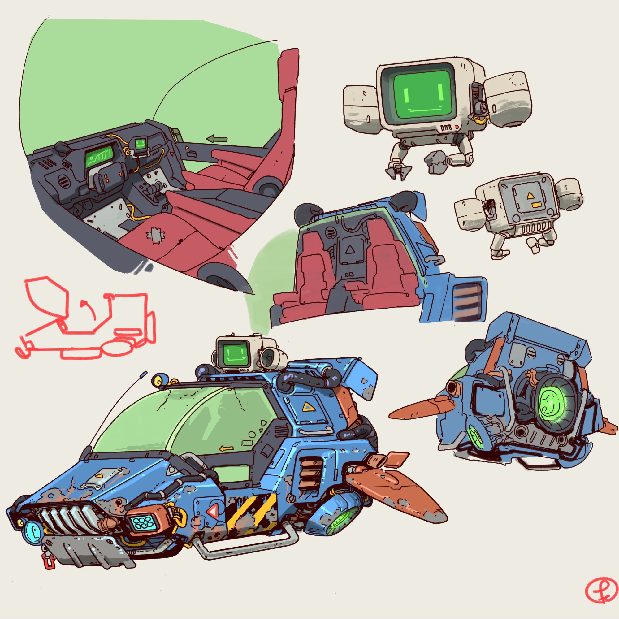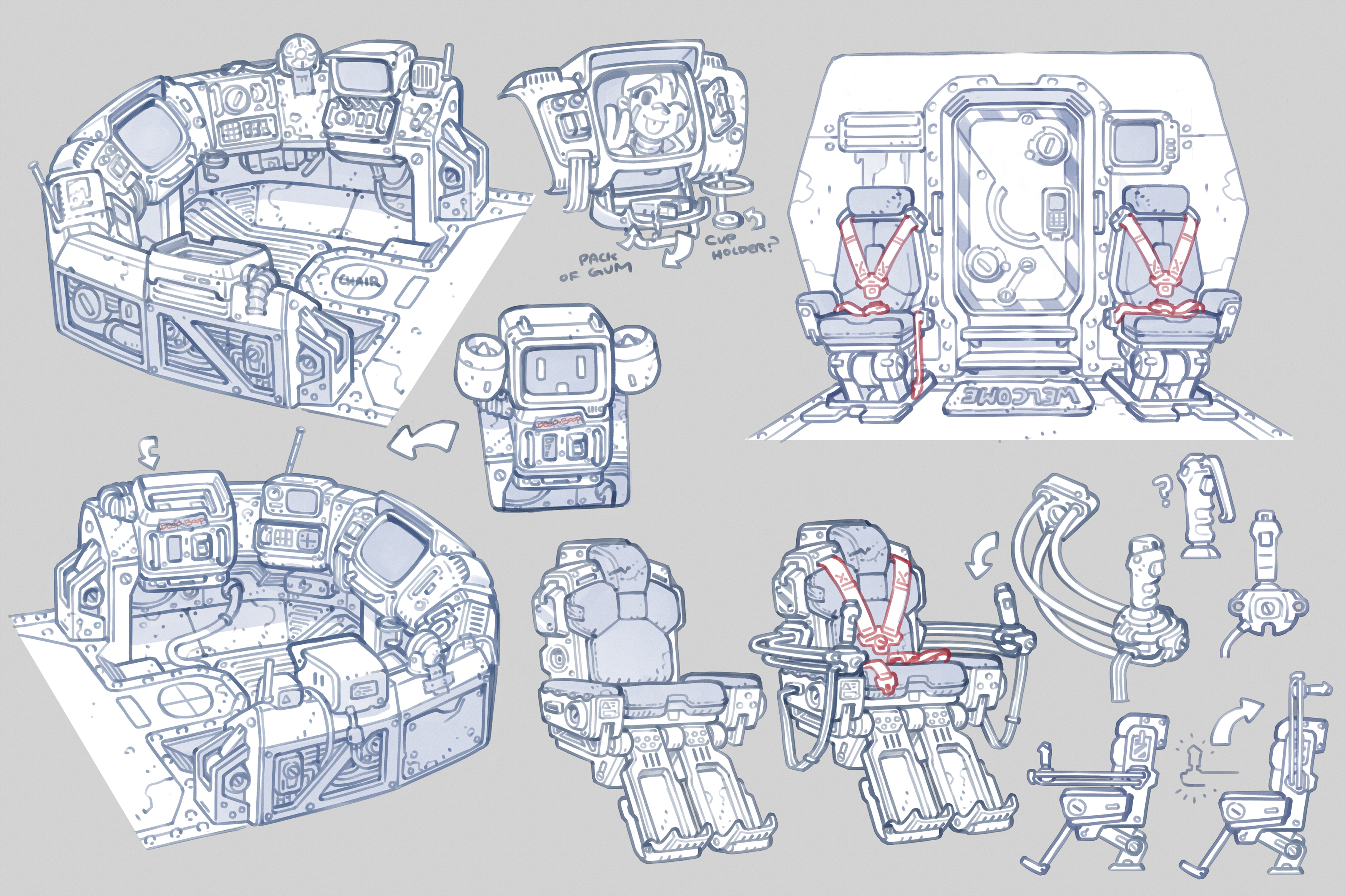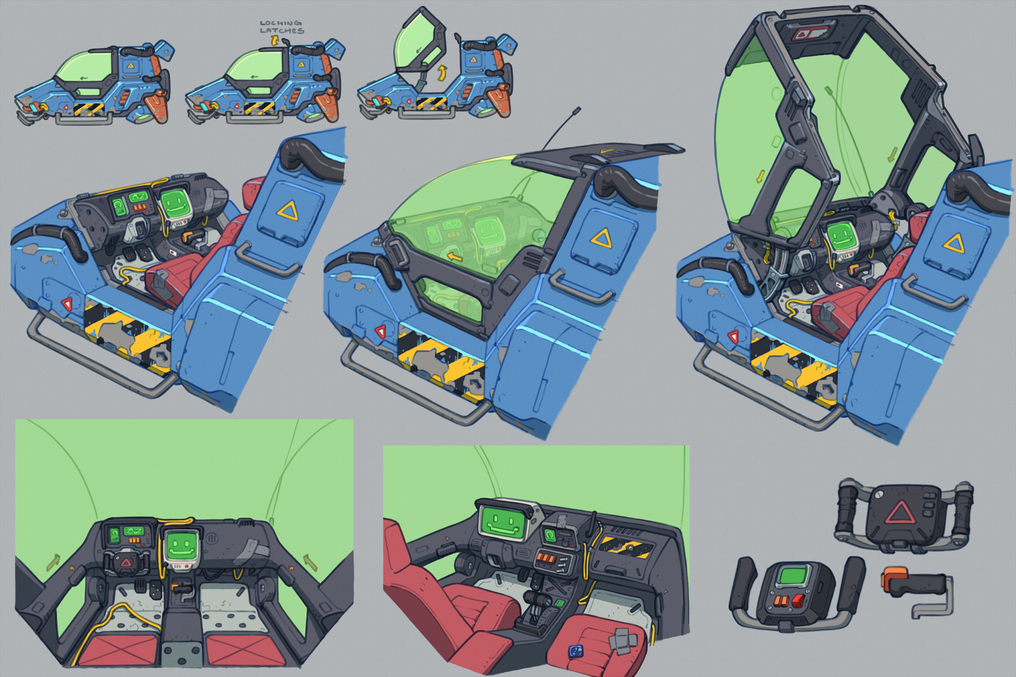 Art direction and concept work done in conjunction with Cameron Sewell for hard surface assets featured in Shot One.
