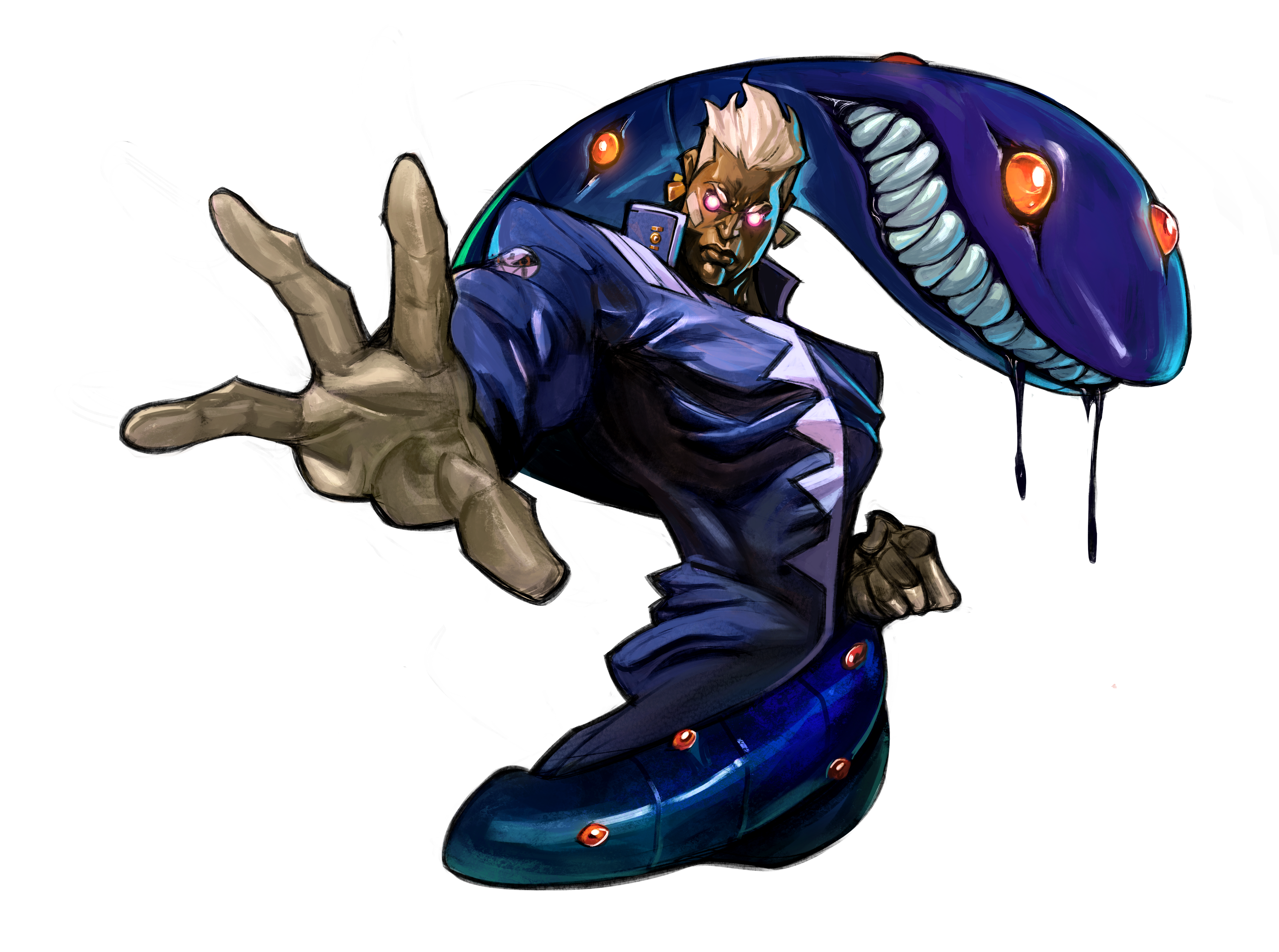 Roster design, idea was to have distinct visual silhouettes and themes for each character. Inspirations were retro Capcom and live service titles. Highly stylized.