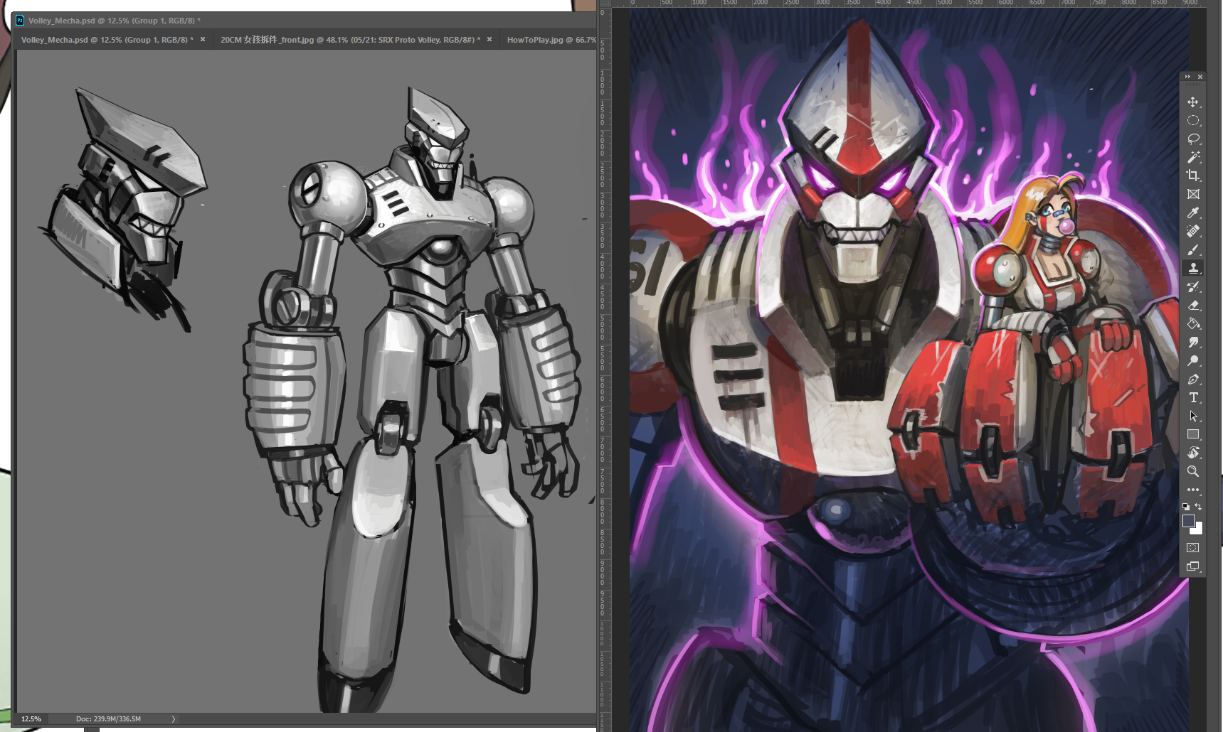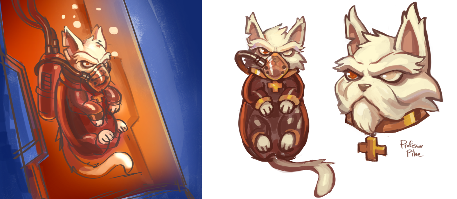 Sample process of translating a rough concept from 2D to 3D while managing every step of the pipeline. From maintaining the painterly feel of the original concept, to the 3D model (Bitgem), to overseeing rigging and animation feel (Andrew Helenek).